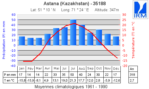 Le total annuel des précipitations est de 318 mm. Ce sont des précipitations faibles parce qu’elles sont comprises entre 250 et 500mm.