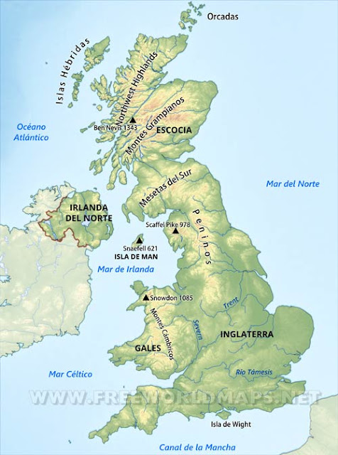 o Meseta Castellana, Macizo Central, Montes Grampianos,